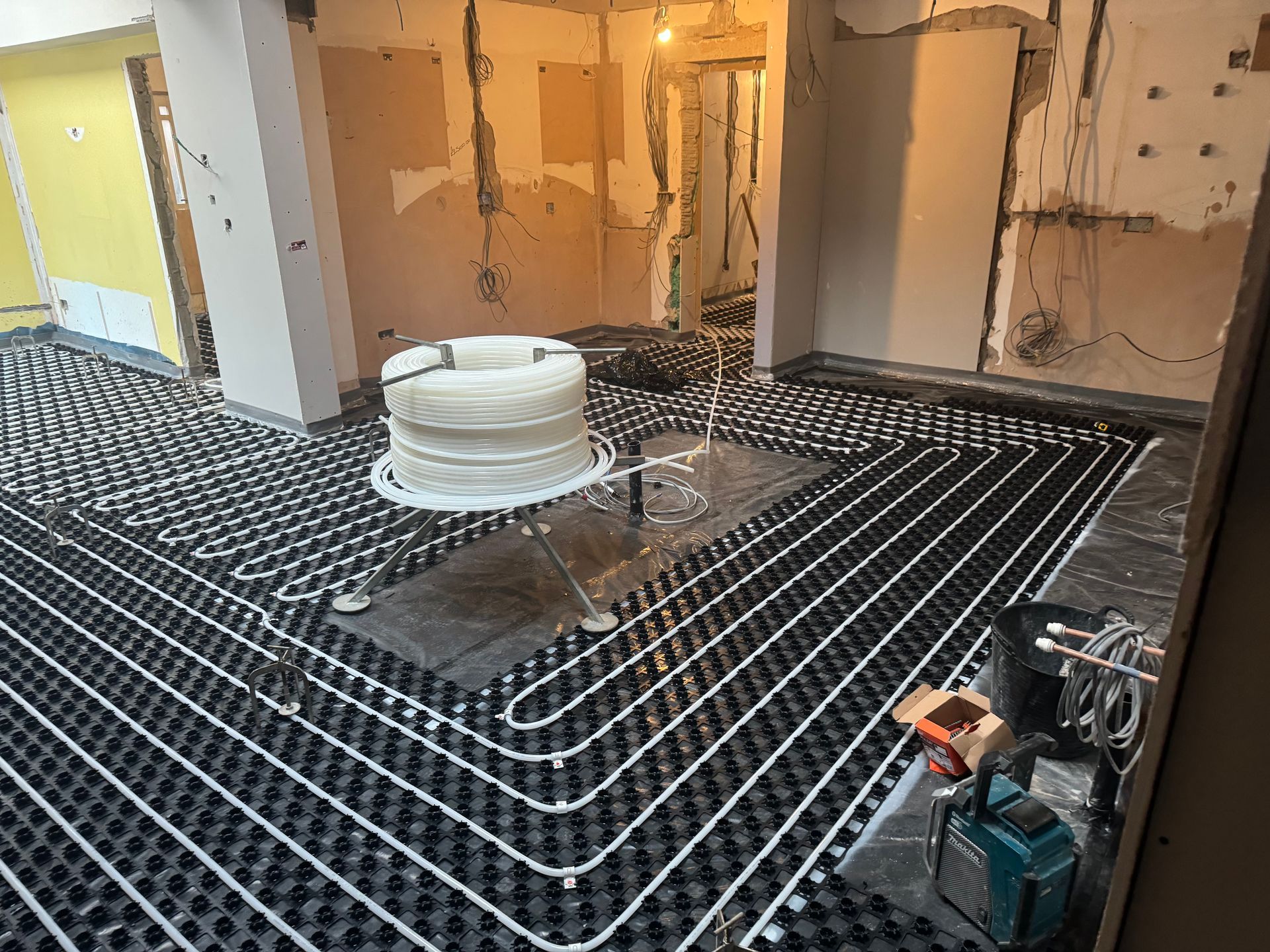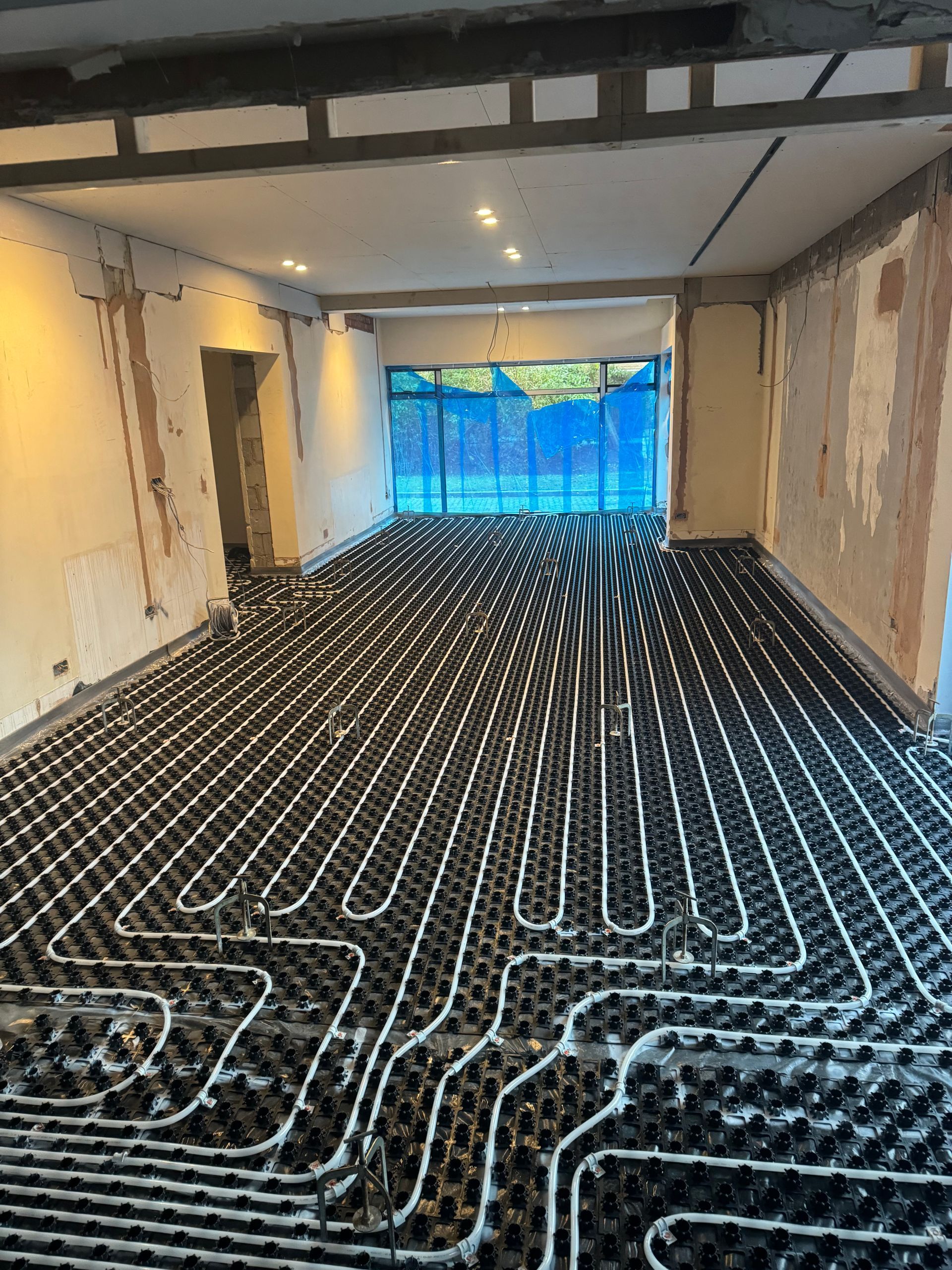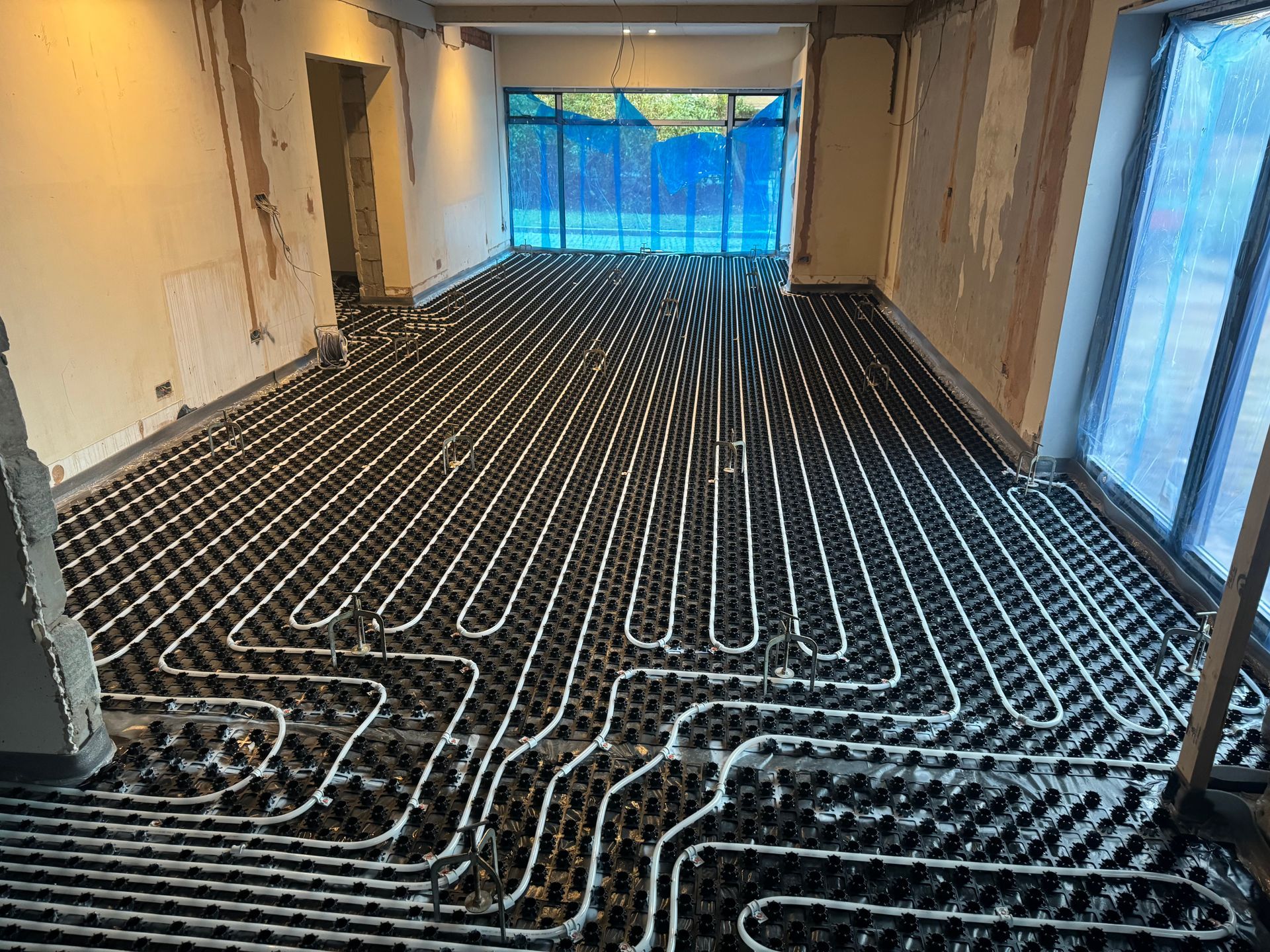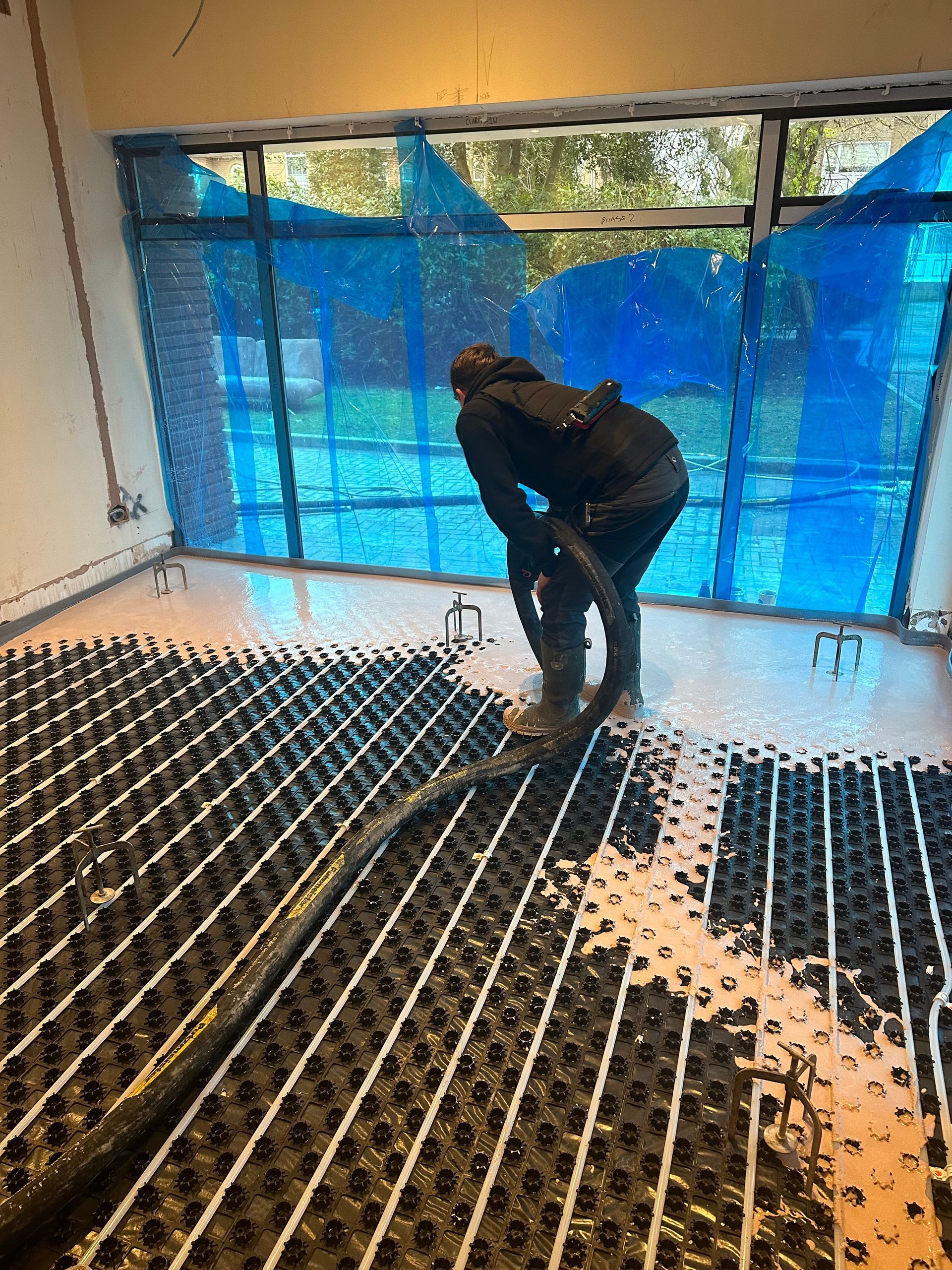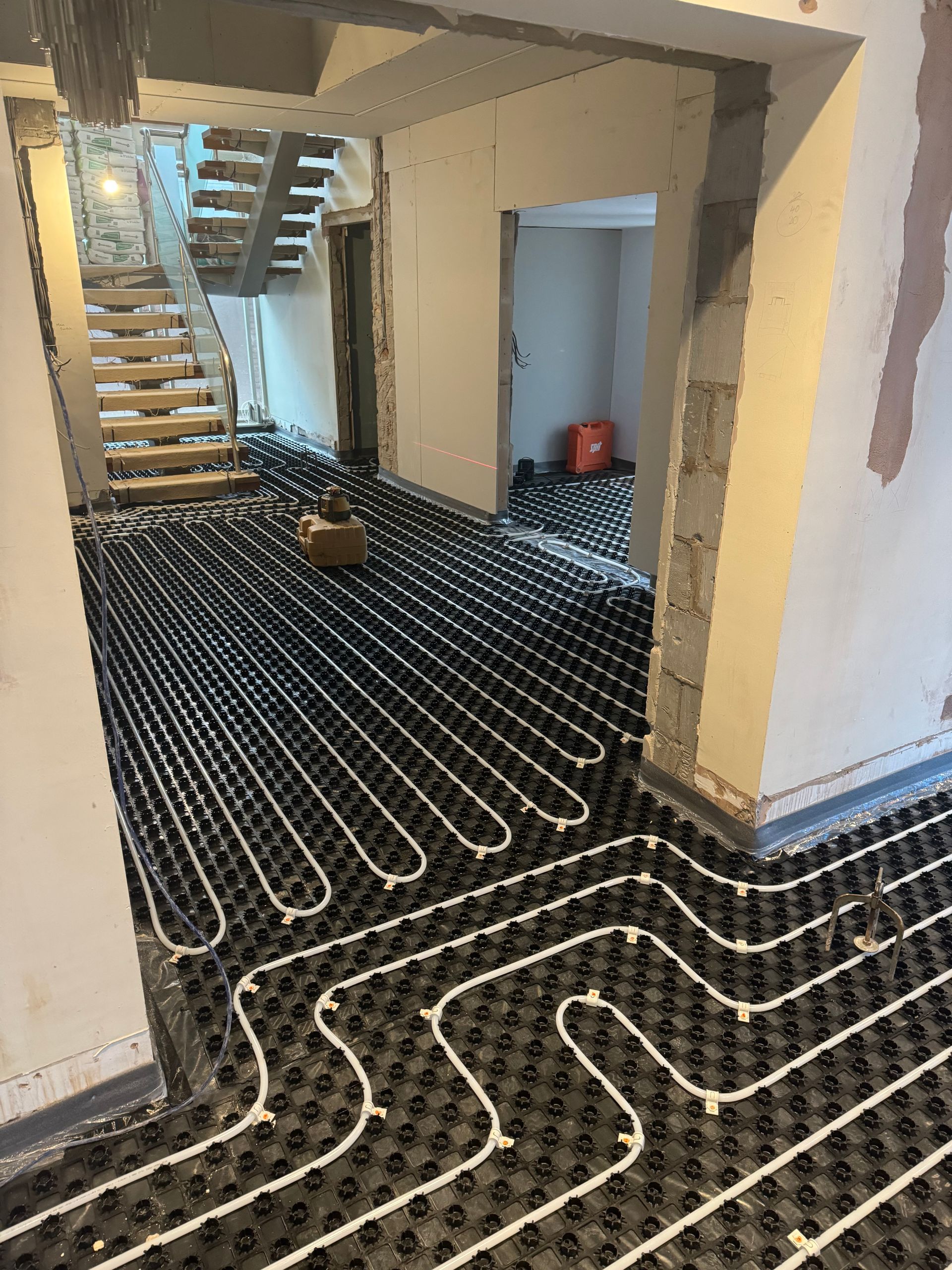 150m2 of a Low Profile Underfloor Heating System followed by Thermio Liquid Screed to this huge property in Salford