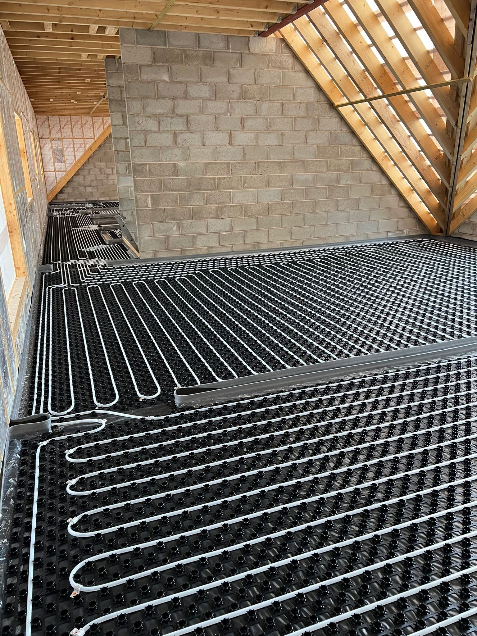 This customer originally came to us to have underfloor heating installed on the ground floor. Desirably, they wanted it throughout the property but thought due to floor heights it was unachievable. However, here at Apex we design, supply and install all types of underfloor heating systems to accommodate each of our customers individual needs. Therefore, on this project a Tackernail Underfloor Heating system which was clipped to the insulation was installed to the ground floor with a 65mm Liquid Screed A. On The first floor we installed a Low Profile Profix+ Underfloor Heating System then covered with a 35mm Thermeo Liquid Screed so very little height was gained.